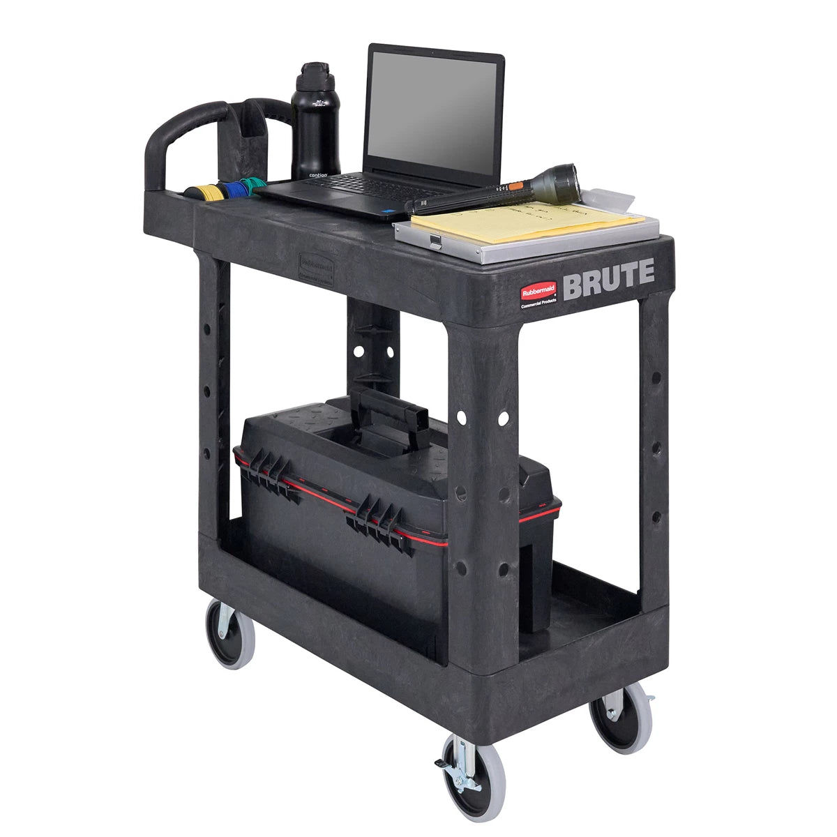The Rubbermaid Heavy-Duty Utility Cart is a professional-grade transport solution designed for demanding environments. Constructed from strong structural foam, this cart resists dents, chips, and rust while offering a high weight capacity. Its two lipped shelves help keep items secure during transport, while the ergonomic handle and smooth-rolling casters provide effortless manoeuvrability. Ideal for warehouses, workshops, hospitality, and maintenance operations, this cart combines durability with everyday convenience.