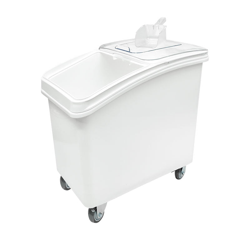 Designed for day-to-day efficiency, the bin sits on four smooth-rolling castors so heavy loads can be moved between storage and preparation zones with less handling. Its tall profile delivers high capacity with a practical footprint, and the overall size of 750 × 457 × 748mm makes it workable under benches or along storage walls. Supplied with a clear scoop for portioning and decanting, it supports organised, hygienic ingredient management where ingredients need to stay accessible and protected.