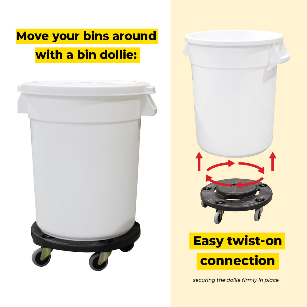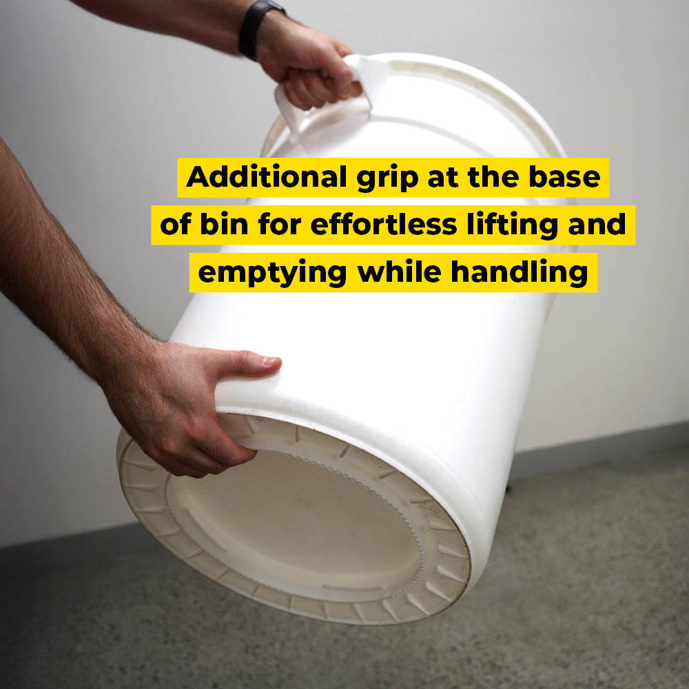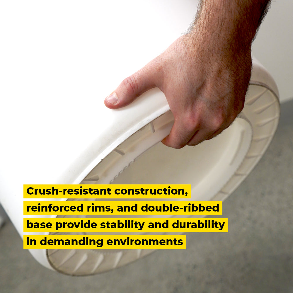 The bin features a double-ribbed base for added stability and improved dragging performance, along with reinforced rims for long-term durability. Built-in ergonomic handles allow secure, non-slip lifting, while the smooth interior surface reduces residue build-up and makes cleaning quick and efficient. An optional tight-fitting lid supports stacking and content protection, and the bin is compatible with a twist-on dolly for added mobility.