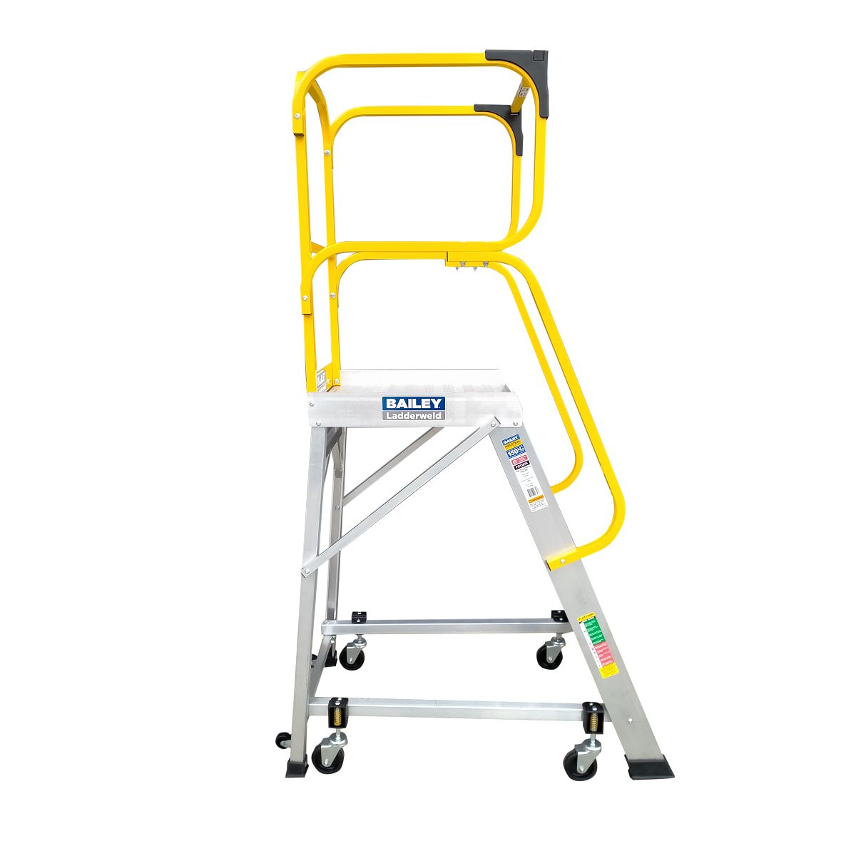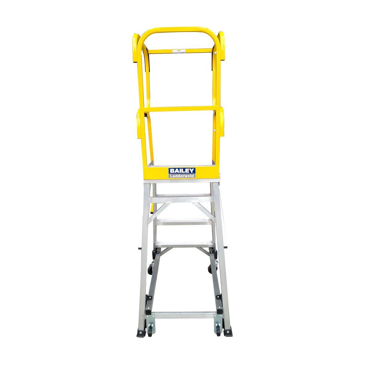 The Bailey FS13875 LADDERWELD® 4 Step MK3 Aluminium Order Picking Platform is a compact, industrial-grade access platform designed to make stock picking safer and more efficient. Built from lightweight yet strong aluminium, it features a large 600 × 500 mm stable platform with a safety gate and high-visibility powder-coated handrails. The unit is easy to move using the Tilt-N-Go rear castors and spring-loaded front castors, ensuring both mobility and stability. With a 150 kg load rating and fully compliant with AS1892 standards, this platform is ideal for warehouses, retail, and industrial environments. Supplied flat packed with tools included for quick and simple assembly.