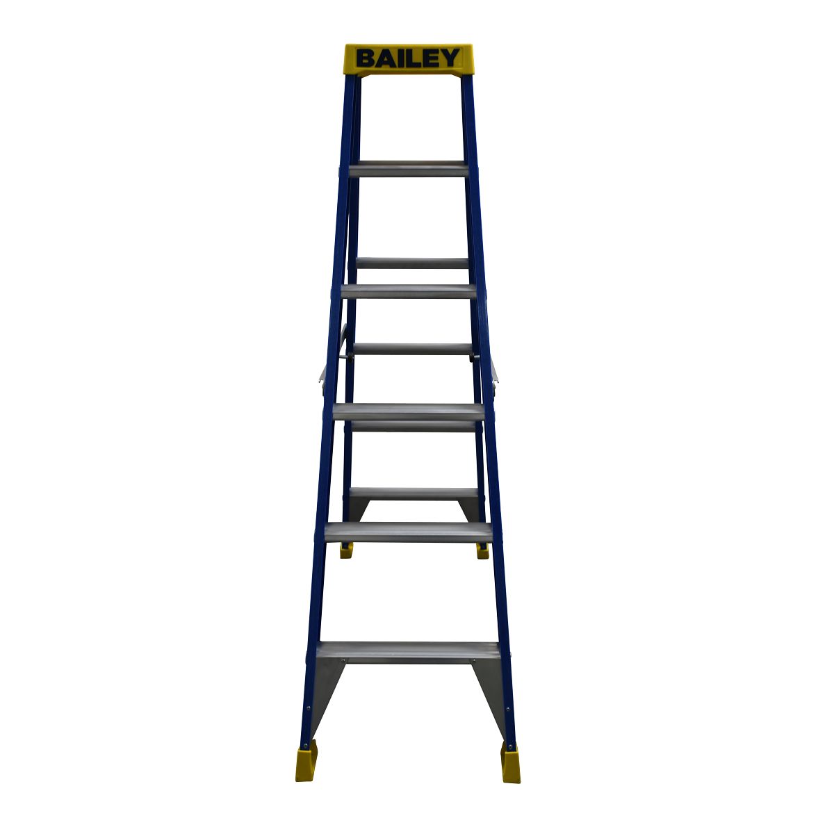 The Bailey FS13980 Pro PUNCHLOCK® 6 Step Fibreglass Double Sided Stepladder is a durable, industrial-duty ladder built for strength, safety, and versatility. Designed for professional use, it features electro-safe fibreglass construction suitable for environments where electrical hazards exist. The double-sided design allows climbing from either side, increasing access and efficiency on the work site. A multi-function top cap provides convenient tool storage, improving safety and productivity. With flat plate tri-bracing and anti-slip PVC boots, this ladder delivers excellent stability and support. Built to meet Australian Standard AS1892, it offers reliable performance for trade and industrial applications.