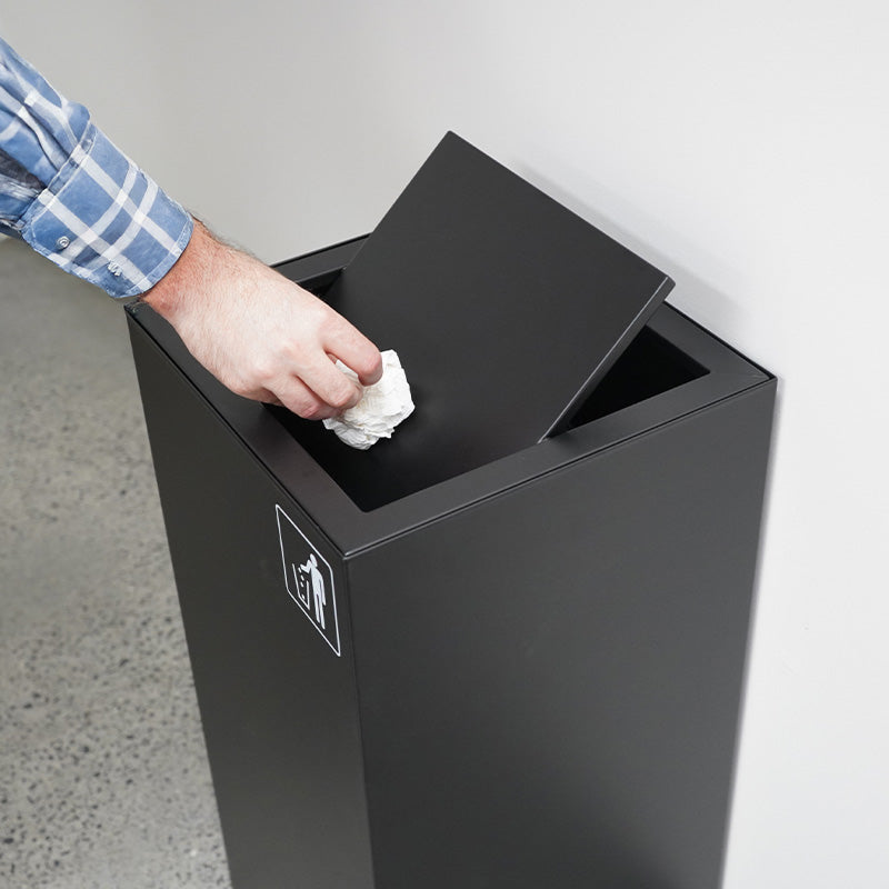 Black Indoor Waste Bin - Swing Top Lid (WRS005)