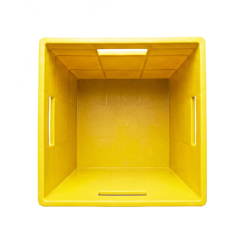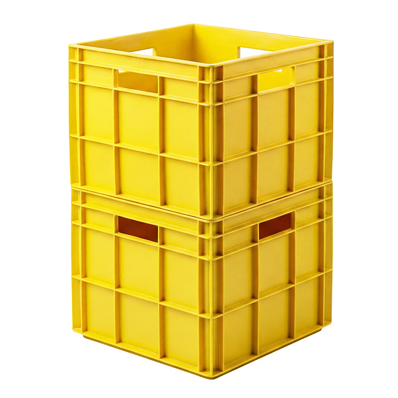 Its cube-shaped profile allows stable stacking to maximise storage space, while smooth internal surfaces make cleaning simple and hygienic. Integrated hand-hold openings on all sides allow comfortable lifting and carrying. The container is corrosion-resistant and suitable for frequent use in demanding environments.